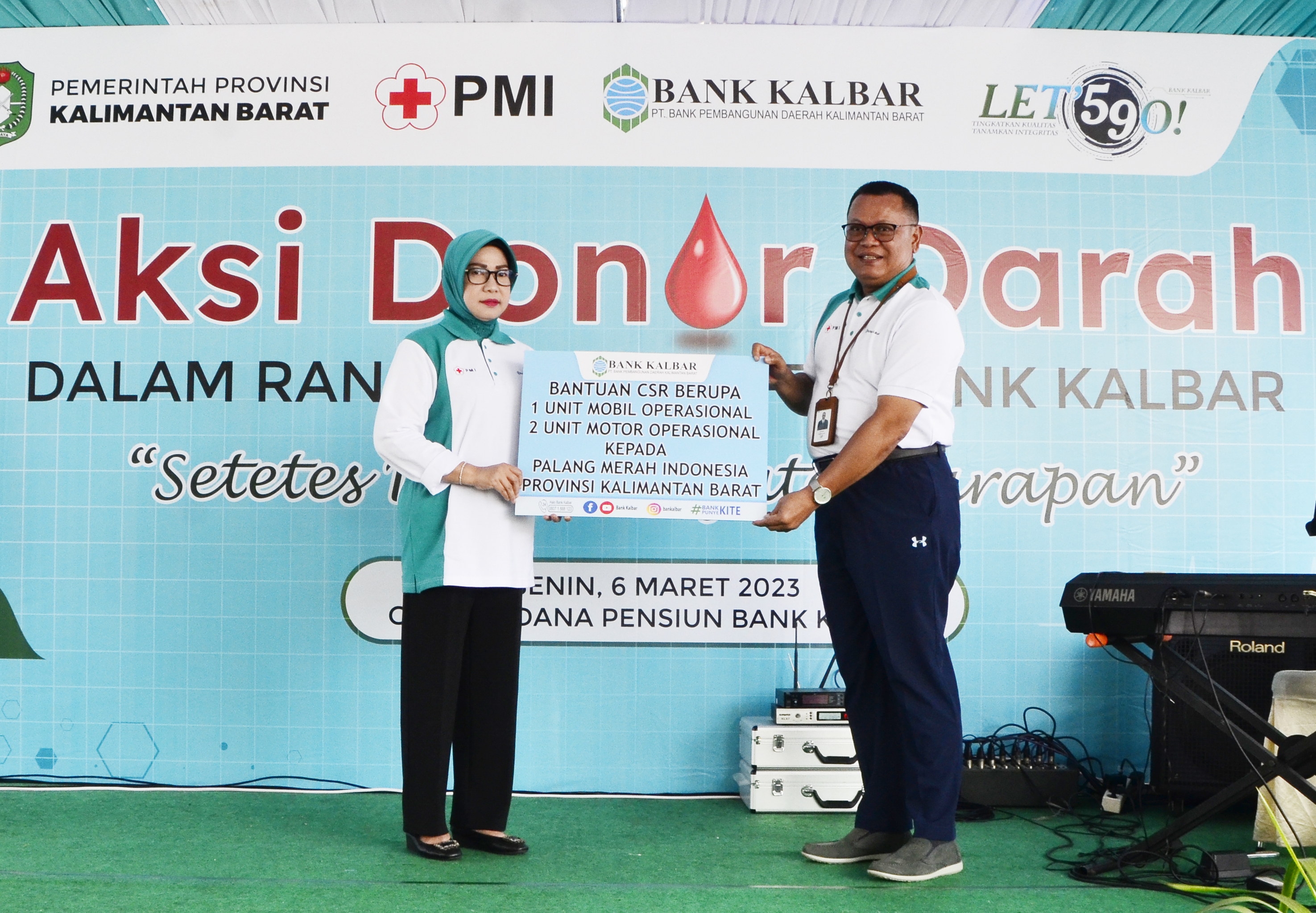 Dalam rangka memeriahkan Milad yang ke-59 serta sebagai bentuk Corporate Responsibility, Bank Kalbar menggandeng Palang Merah Indonesia (PMI) Provinsi Kalimantan Barat (Kalbar) dalam gelar aksi sosial donor darah, yang berlangsung di Gedung Diklat Dana Pensiun Bank Kalbar, Senin 6 Maret 2023.